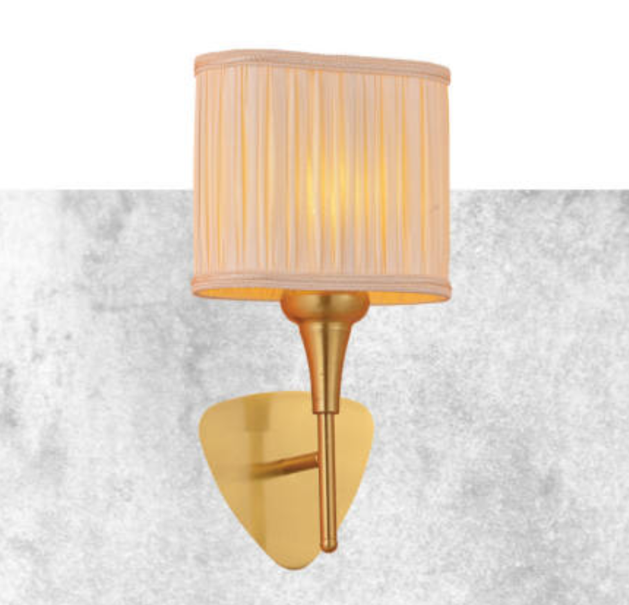 Đèn gắn tường thân vàng đồng, chụp vải trắng cao 33cm VL-4816