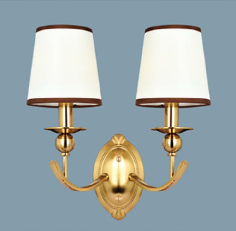 Đèn gắn tường cổ điển thân màu đồng 2 chụp vải trắng VB-2305/2