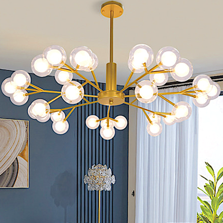 Đèn Chùm 25 quả cầu thuỷ tinh thân vàng đồng ĐT-YY18/25 GD W650xH600