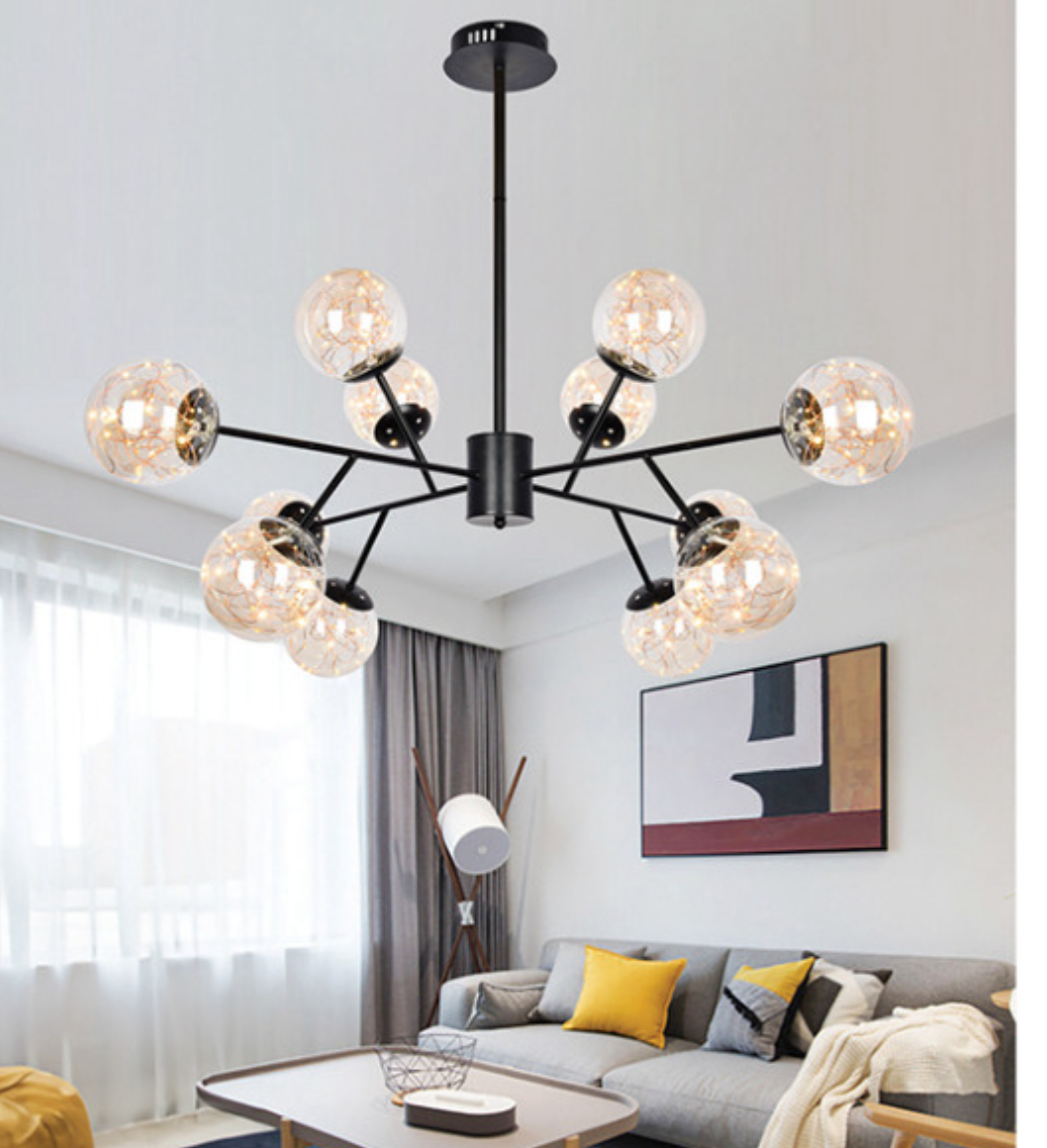 Đèn Chùm 12 quả cầu thuỷ tinh led dây ĐT-DZ6/12 Ø1100xH800