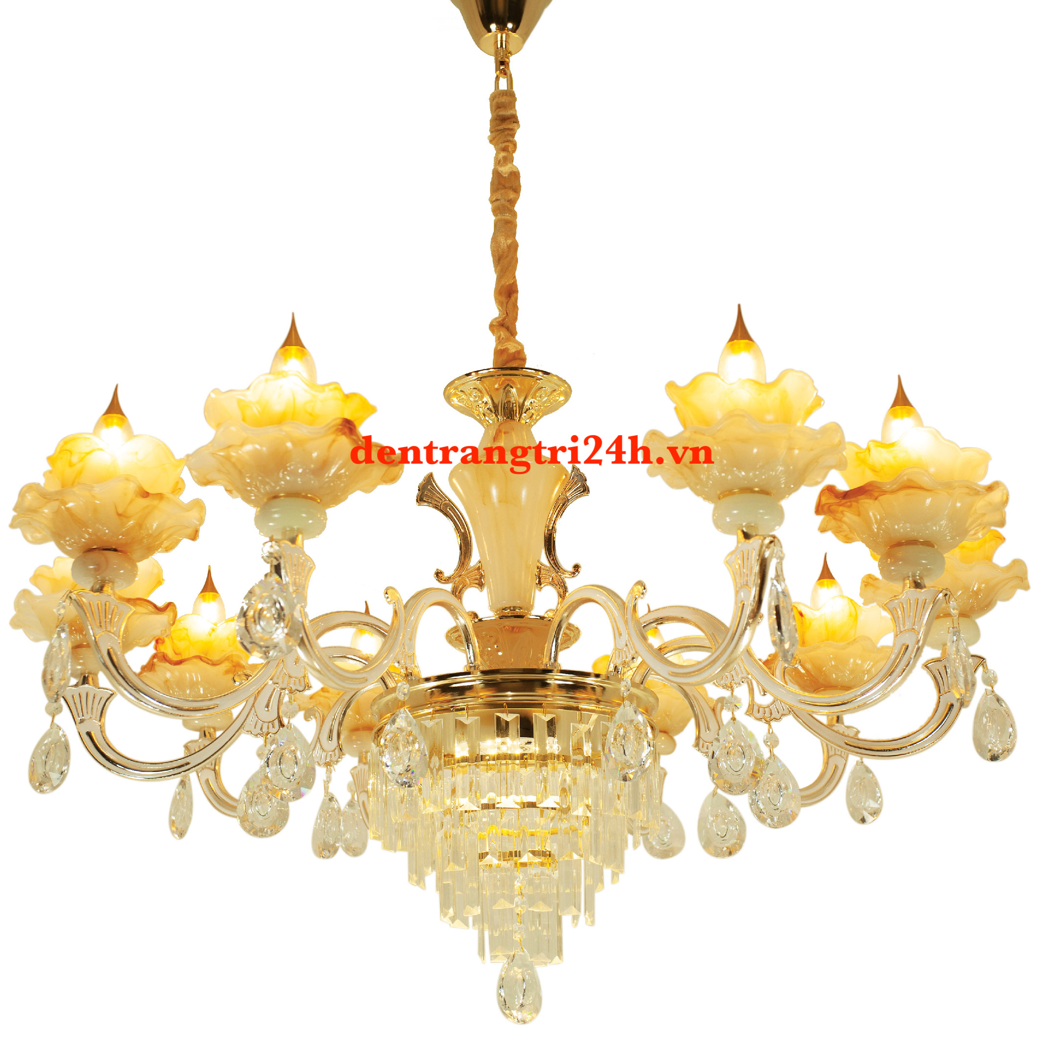 Đèn Chùm Pha Lê 10 bông hoa CNQT-96-21 Ø850xC900
