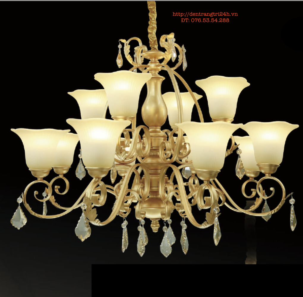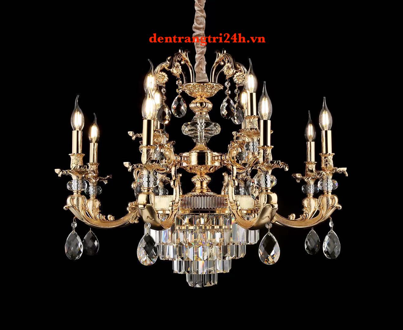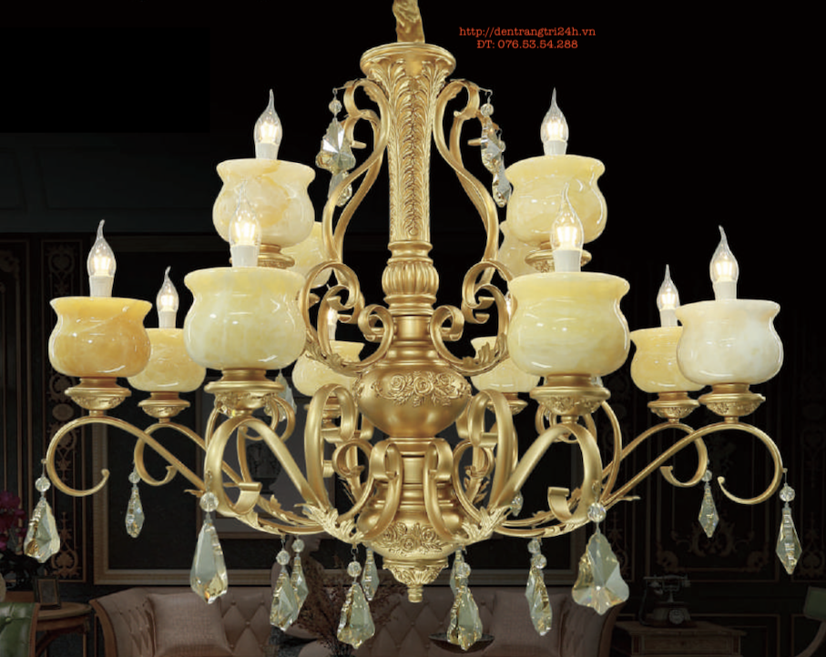 Đèn Chùm 15 ngọn nến cổ điển màu vàng 24k CNQT-220-23 Ø1000 x H950