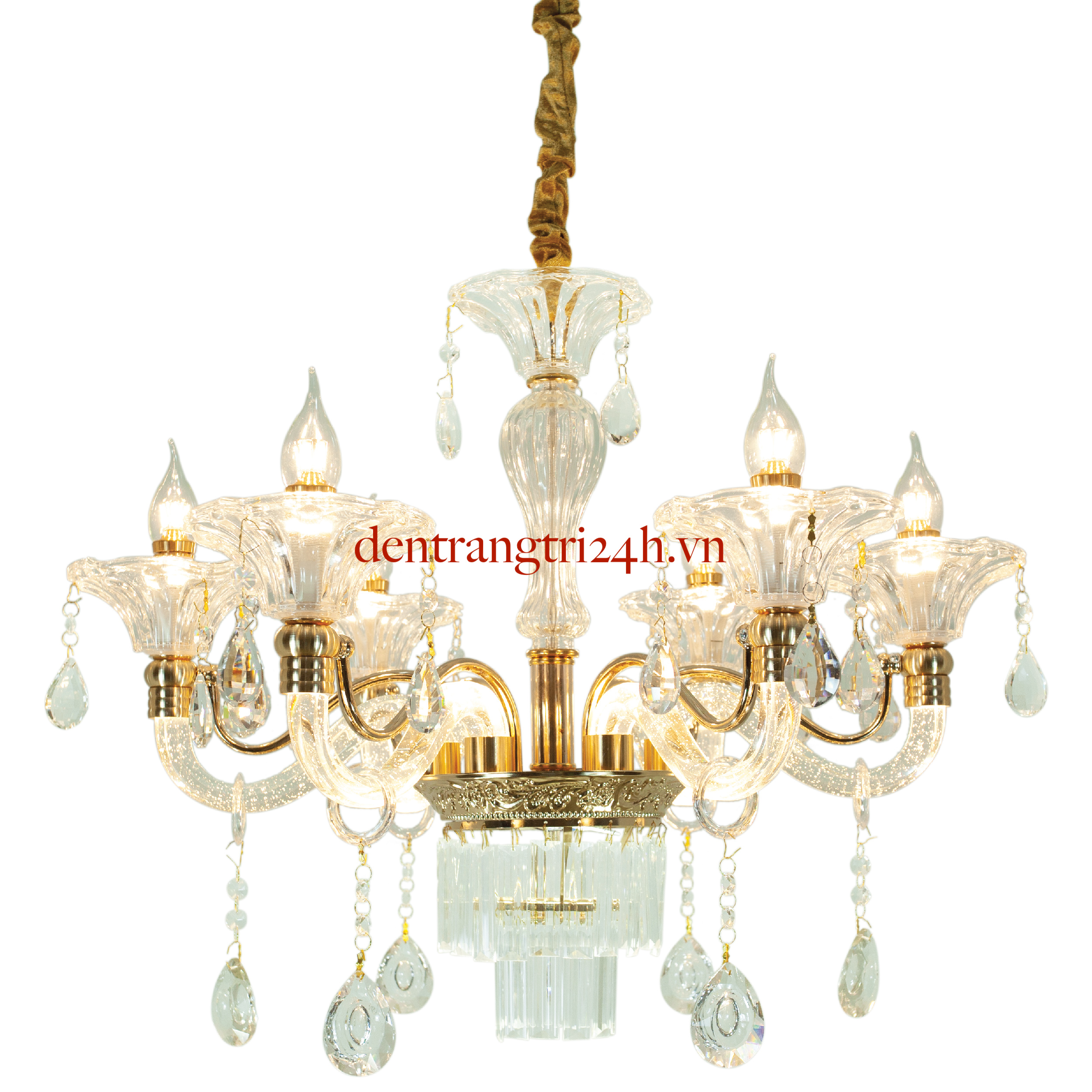 Đèn Chùm Pha Lê 6 tay thủy tinh đường kính 70cm CNQT-276 Ø700xC700