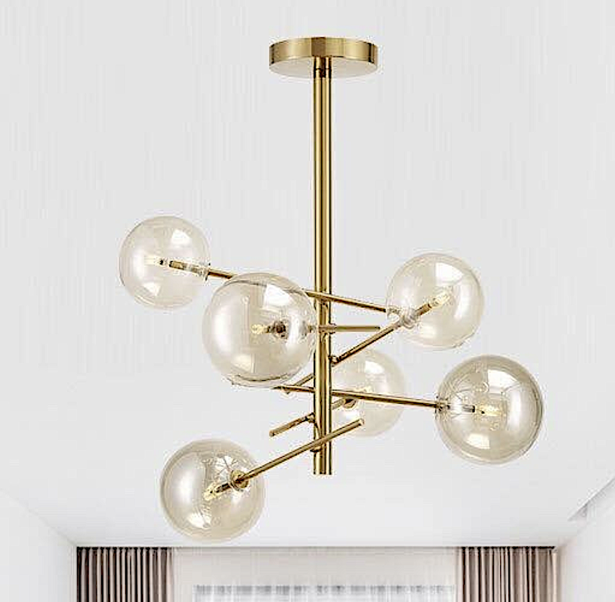 Đèn Chùm 6 quả cầu thuỷ tinh trong đường kinh 68cm THCN 61A-19