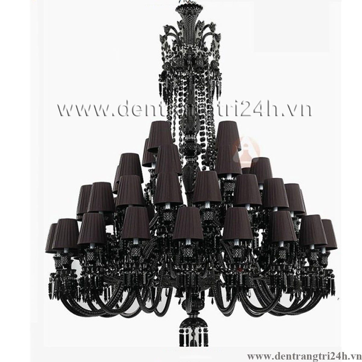 Đèn Chùm Pha Lê đen có 48 chụp vải đen đường kính 1,5 mét CNQT-294