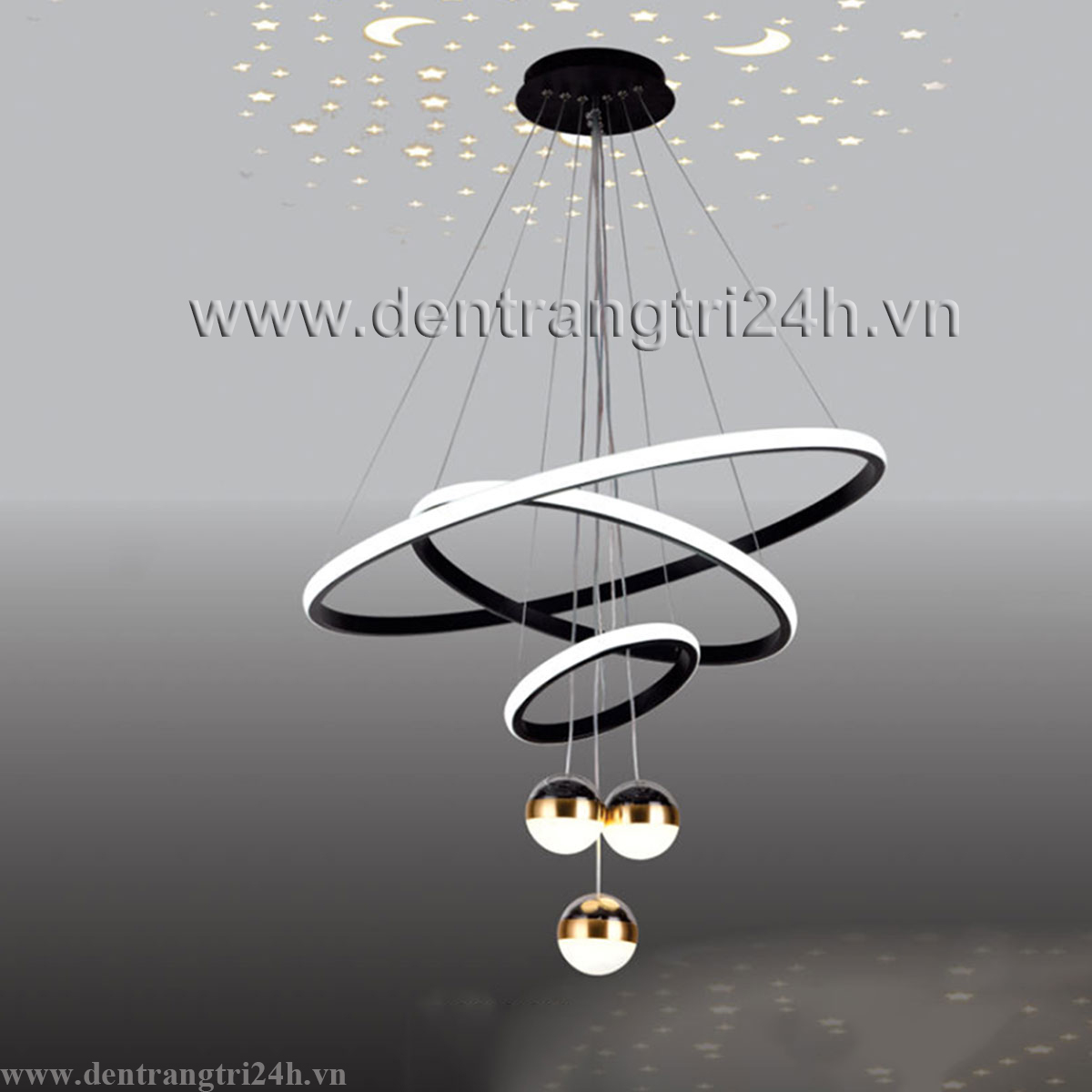 Đèn Thả led 3 vòng + 3 đèn cầu đen T 8228 Ø200-400-600xH1000