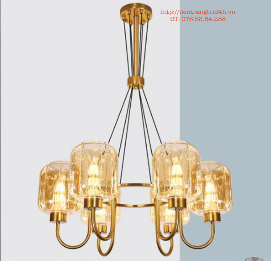 Đèn Chùm hiện đại 6 chụp thủy tinh như đèn dầu TL 1633/6 Ø600xH1000