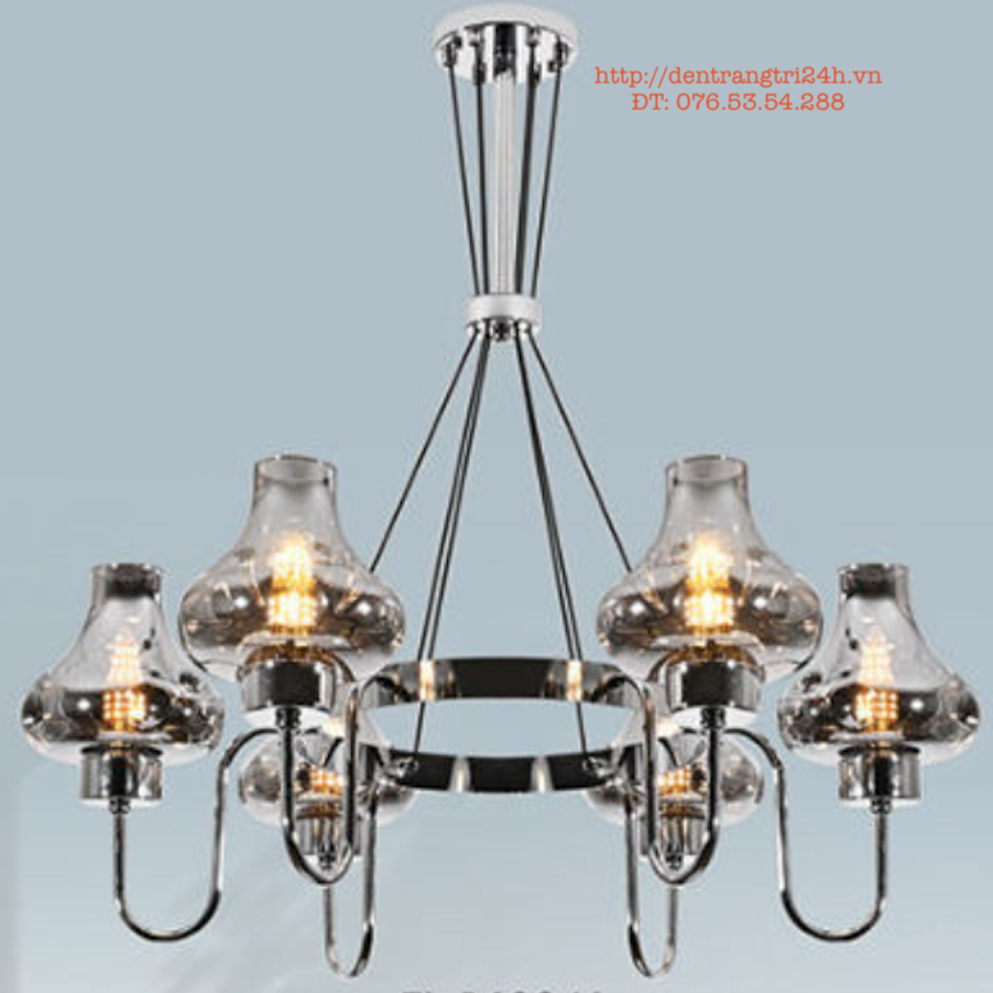 Đèn Chùm hiện đại 6 chụp thủy tinh trong TL 1632/6 Ø600xH1000