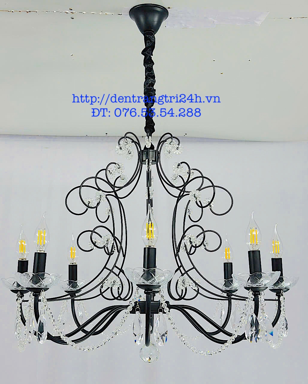 Đèn Chùm Pha Lê 8 ngọn nến thân đen DC171T8D Ø720xH550