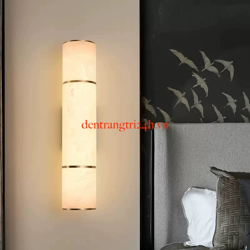 Đèn gắn tường đồng- bằng đá ống tròn cao 58cm VD8007