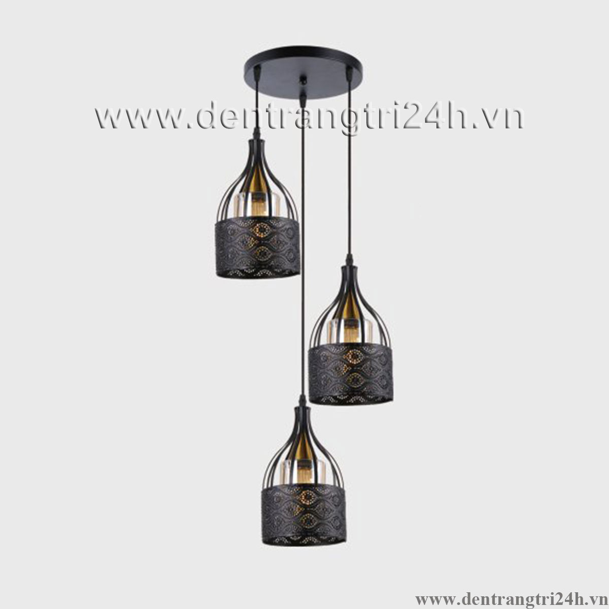 Đèn Thả Bàn Ăn 3 lồng sắt họa tiết phong cách indochine DY4013/3 BK Ø320xH1000