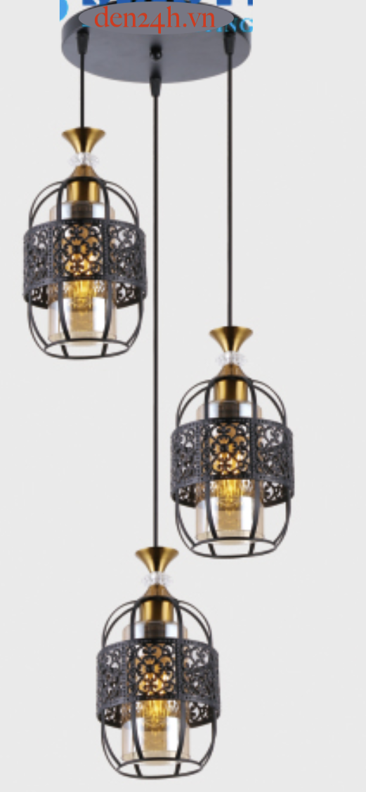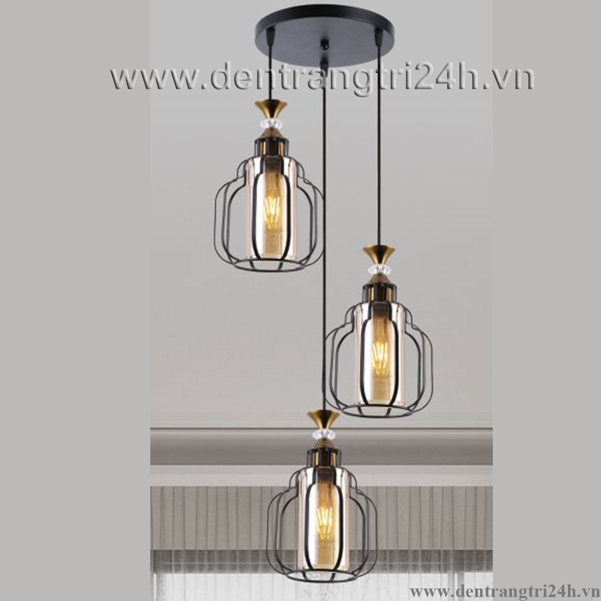Đèn Thả Bàn Ăn 3 lồng đèn sắt chao thủy tinh DY4003/3 BK Ø320xH1000