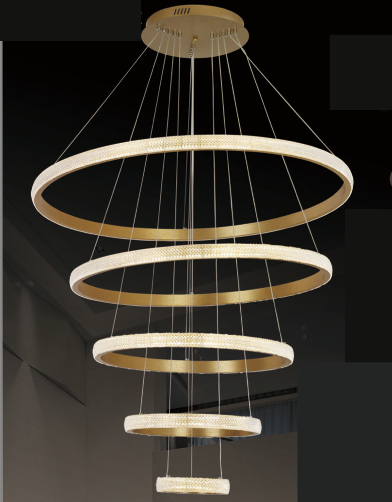 Đèn Thả 5 vòng tròn led 3 màu thân vàng C220 Ø200-400-600-800-1000