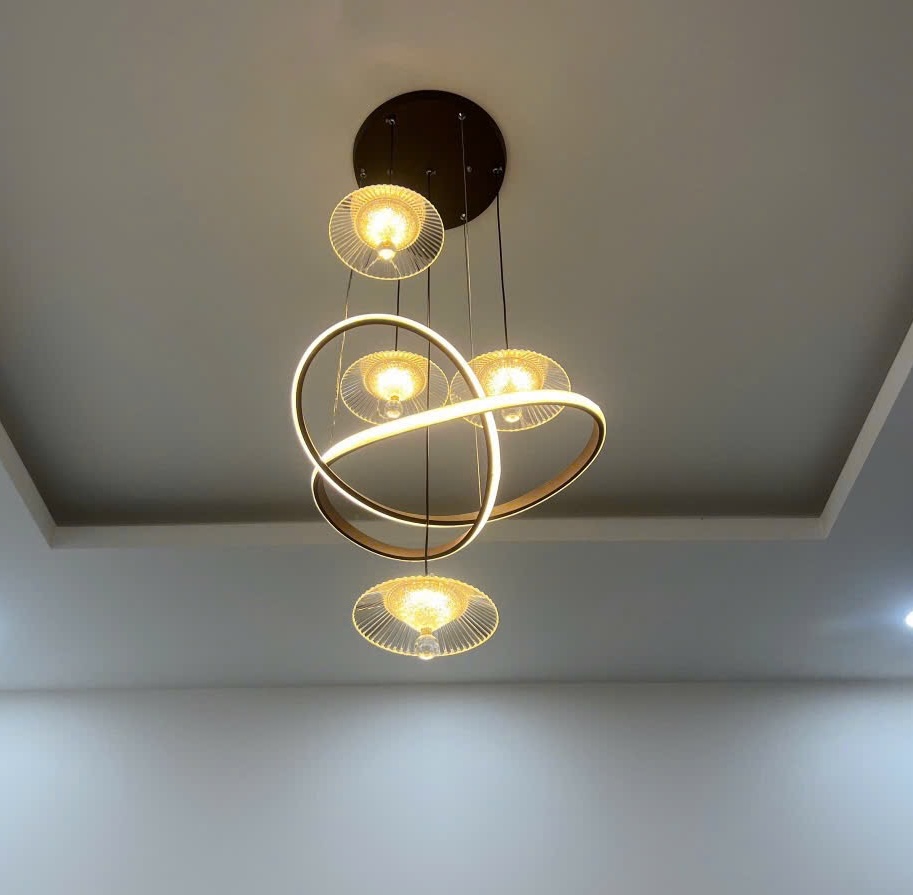 Đèn Thả Bàn Ăn vòng led xoắn + 4 chao đèn thả THDBA02 Ø500xH1000