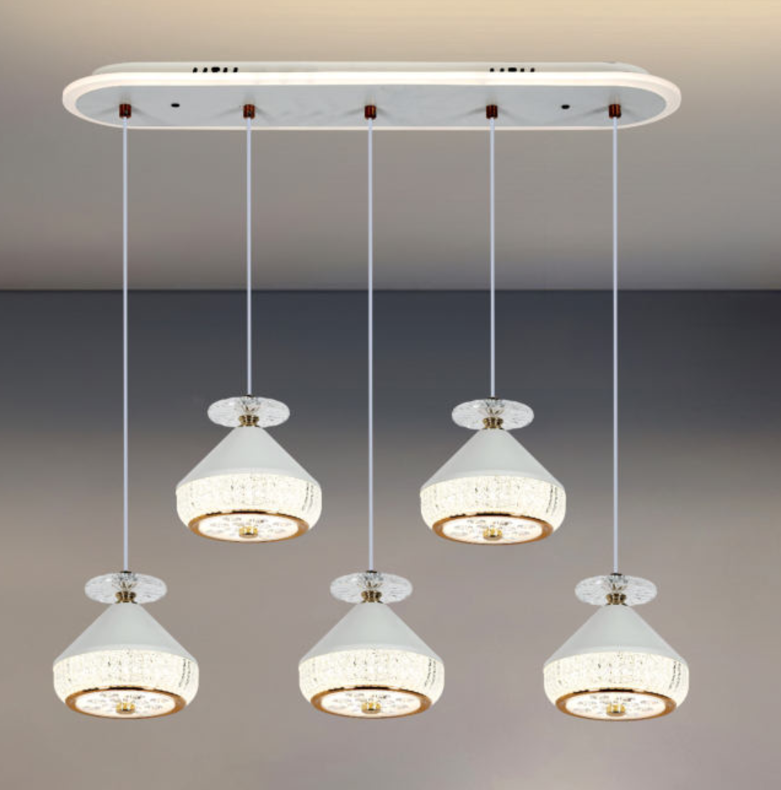 Đèn Thả LED ngang cho bàn ăn 6 ghế 5 chao đèn thả T 2195/5 600xH1200
