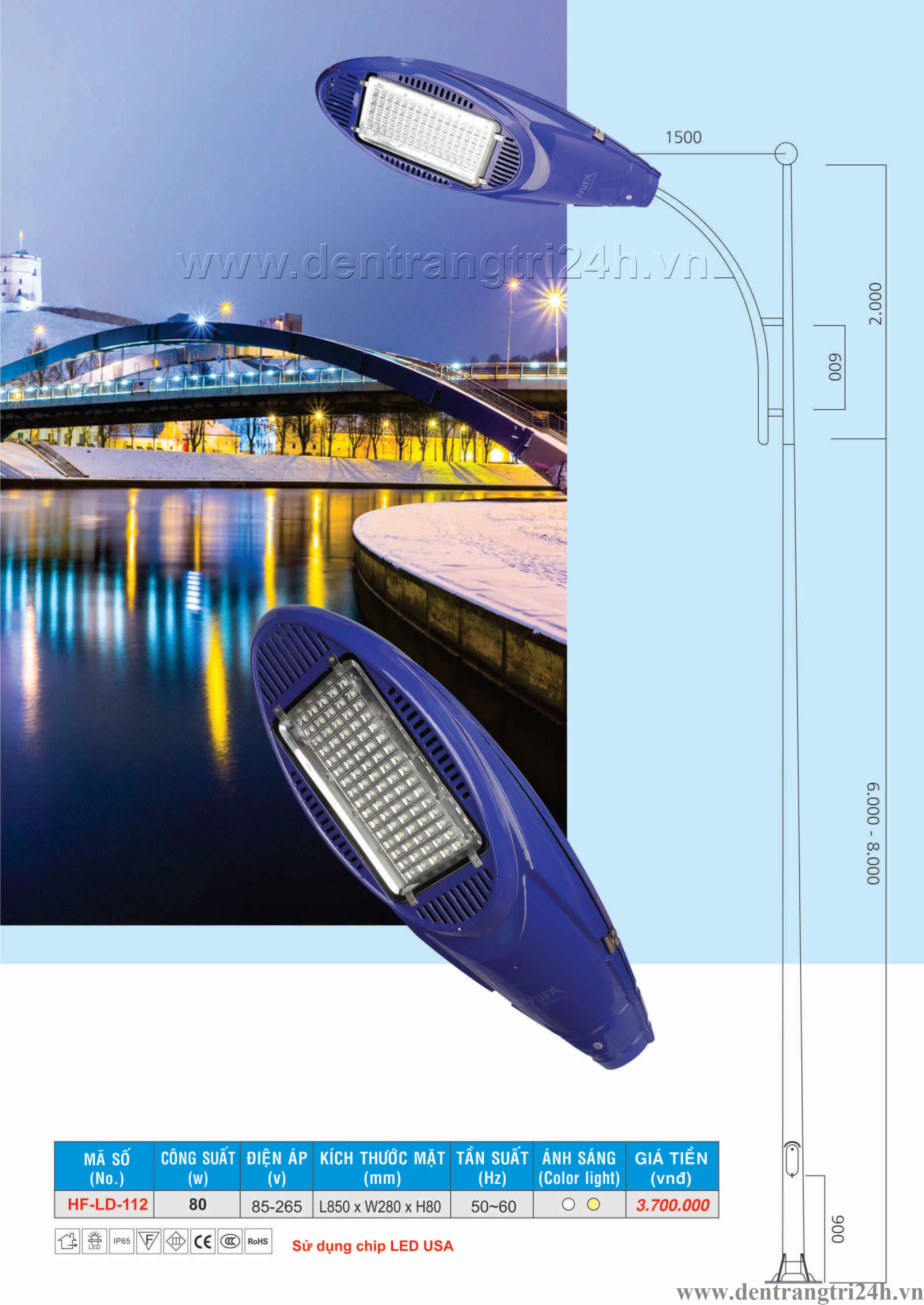 Đèn Đường Chiếu Sáng HP3 HF-LD-112 - 80WL850xW280xH80