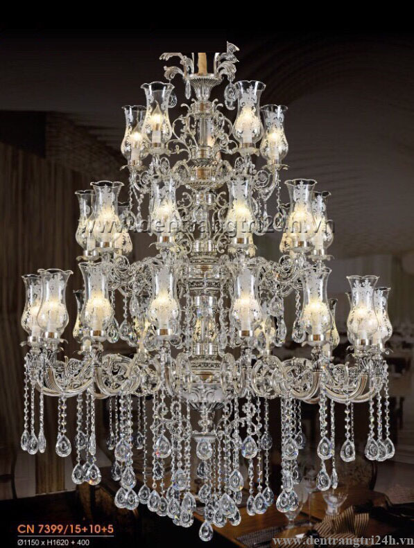 Đèn Chùm Pha Lê Nến HD CN 7399/15+10+5 Ø1150xH1620+400