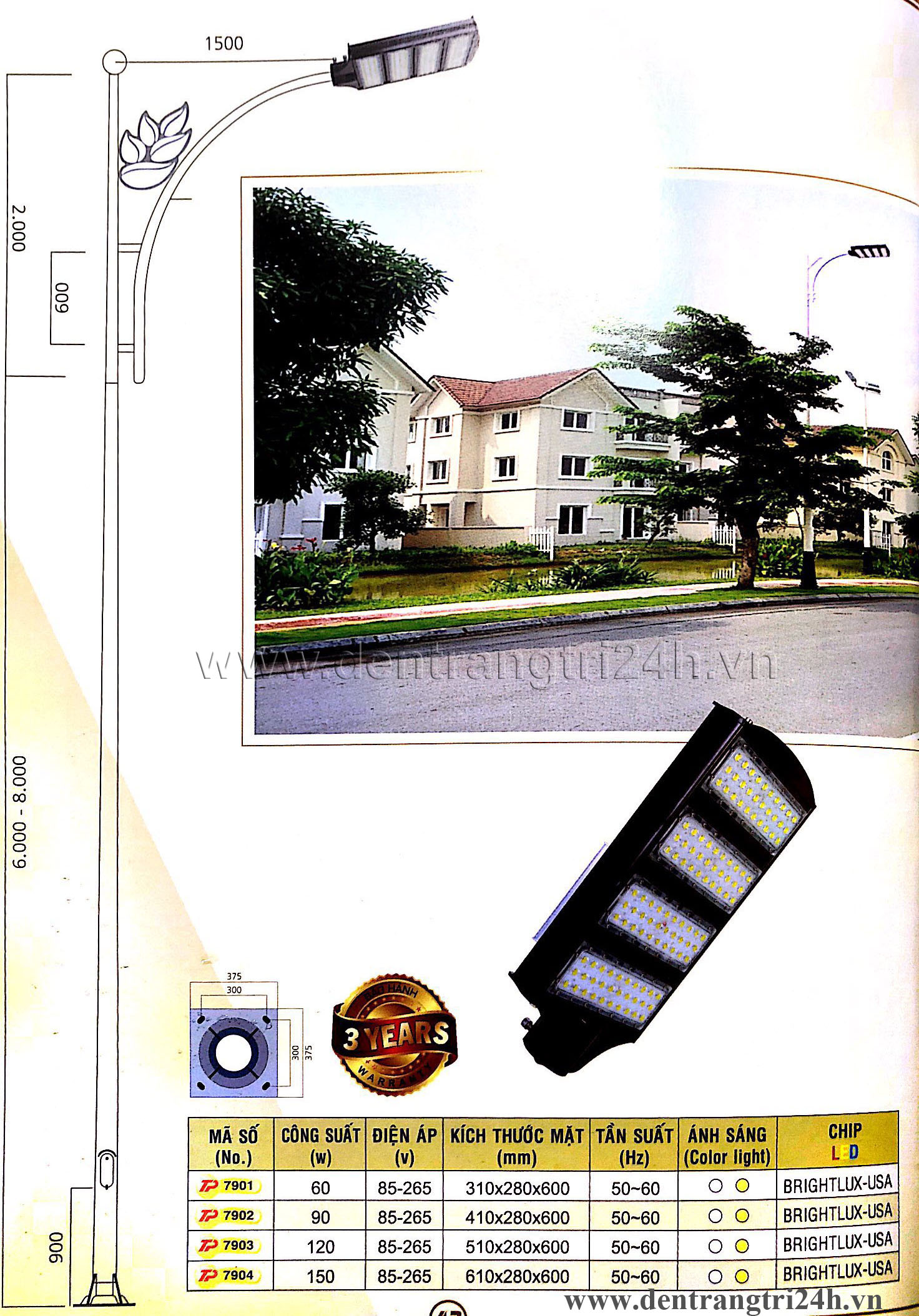 Đèn Đường Chiếu Sáng TP 7901 310x280x600