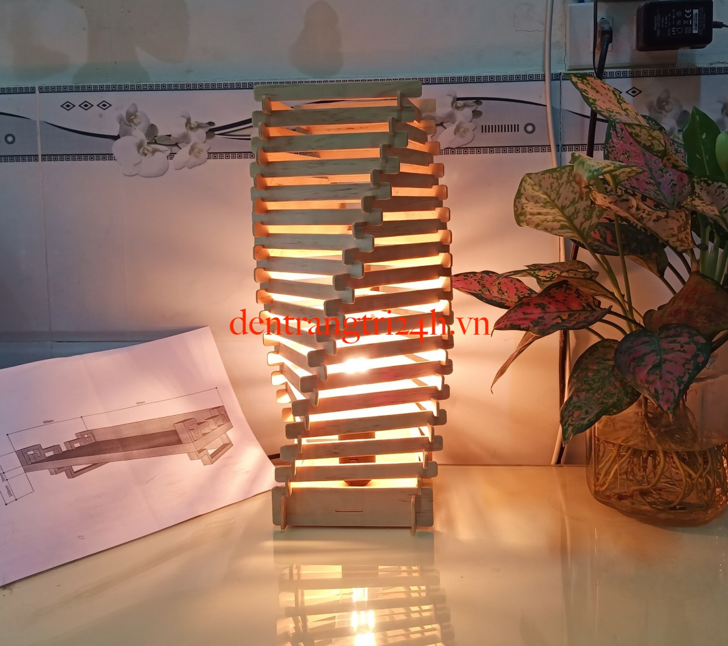 Đèn để bàn gỗ xoắn nghệ thuật cao 40cm HH DBG-1507