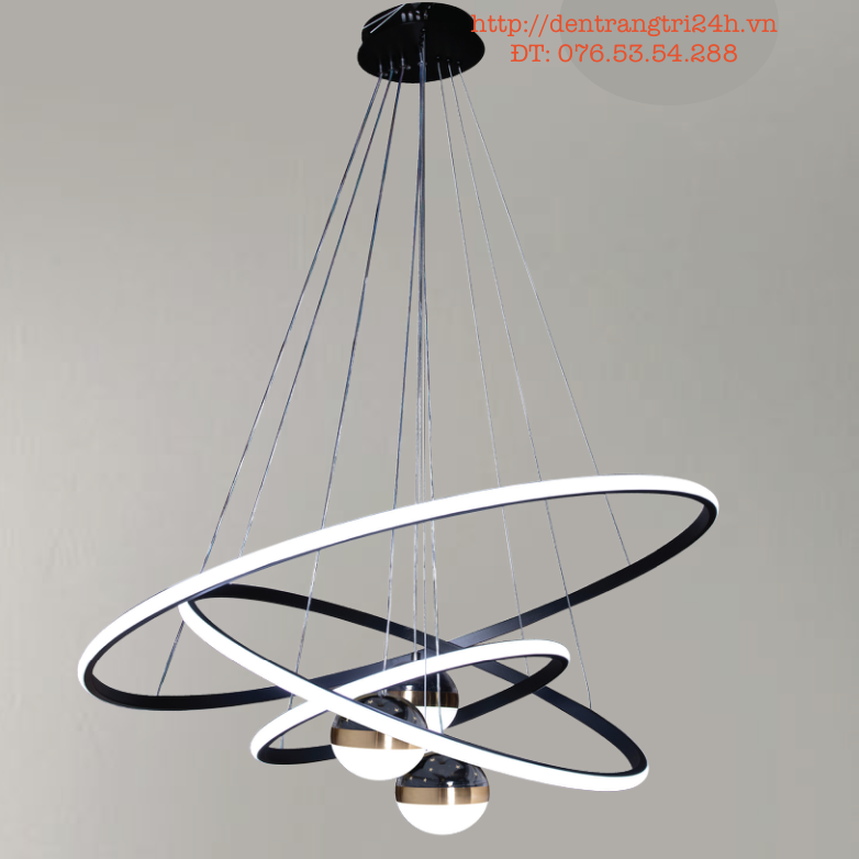 Đèn Treo 3 vòng tròn thân đen và 3 quả cầu sao trăng led 3 màu TH-8215-24