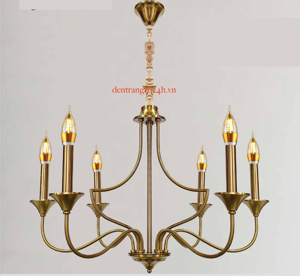 Đèn Chùm xi đồng 6 ngọn nến phong cách châu âu đơn giản CNQT-409 Ø720xH500
