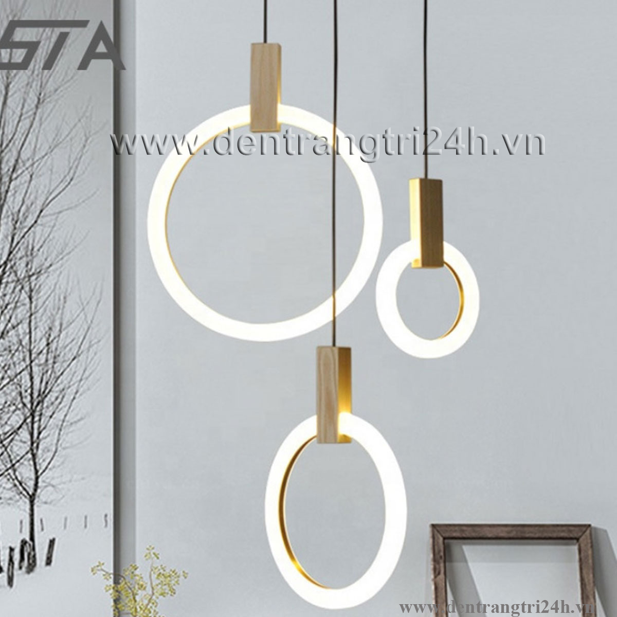 Đèn Thả 4 vòng tròn led màu nâu cà phê to nhỏ led 3 màu sáng TH-8039