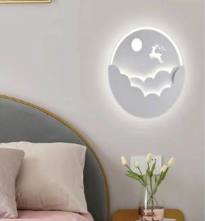 Đèn ốp tường led tròn hình con hươu mặt trăng V-9983 L240xH240