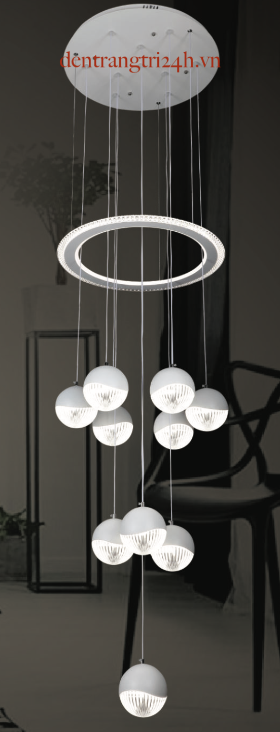 Đèn Thả LED xoắn và 4 chao đèn thả T-509/4+1 Ø300xH1500