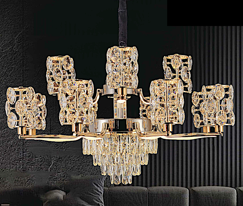 Đèn Chùm pha lê 15 ngọn nến đường kính 90cm DC9178T15 L900xH800