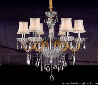 Đèn Chùm pha lê phong cách bán cổ điển 6 chao đèn bằng vải CN 8118/6 Ø750xH600+400