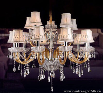 Đèn chùm tân cổ điển 2 tầng 15 chao bằng vải CN 8118/15 Ø950xH800+400
