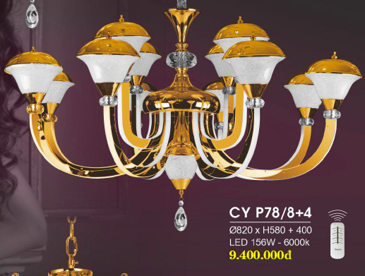 Đèn Chùm Kiểu Ý HP1 CY P78/8+4 Ø820xH580+400