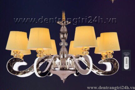 Đèn chùm pha lê phong cánh Châu Âu 8 chao vải CN 8118/8 Ø850