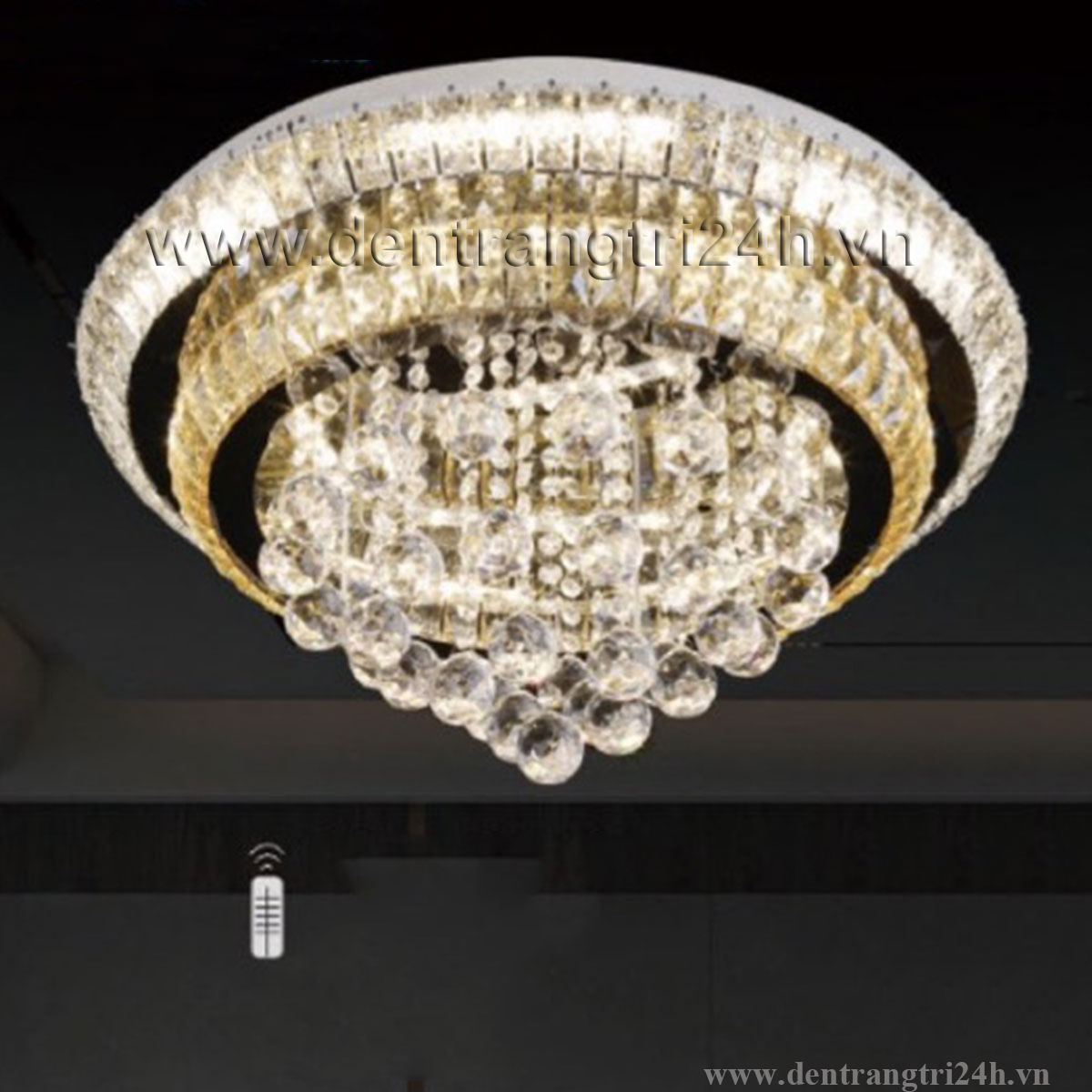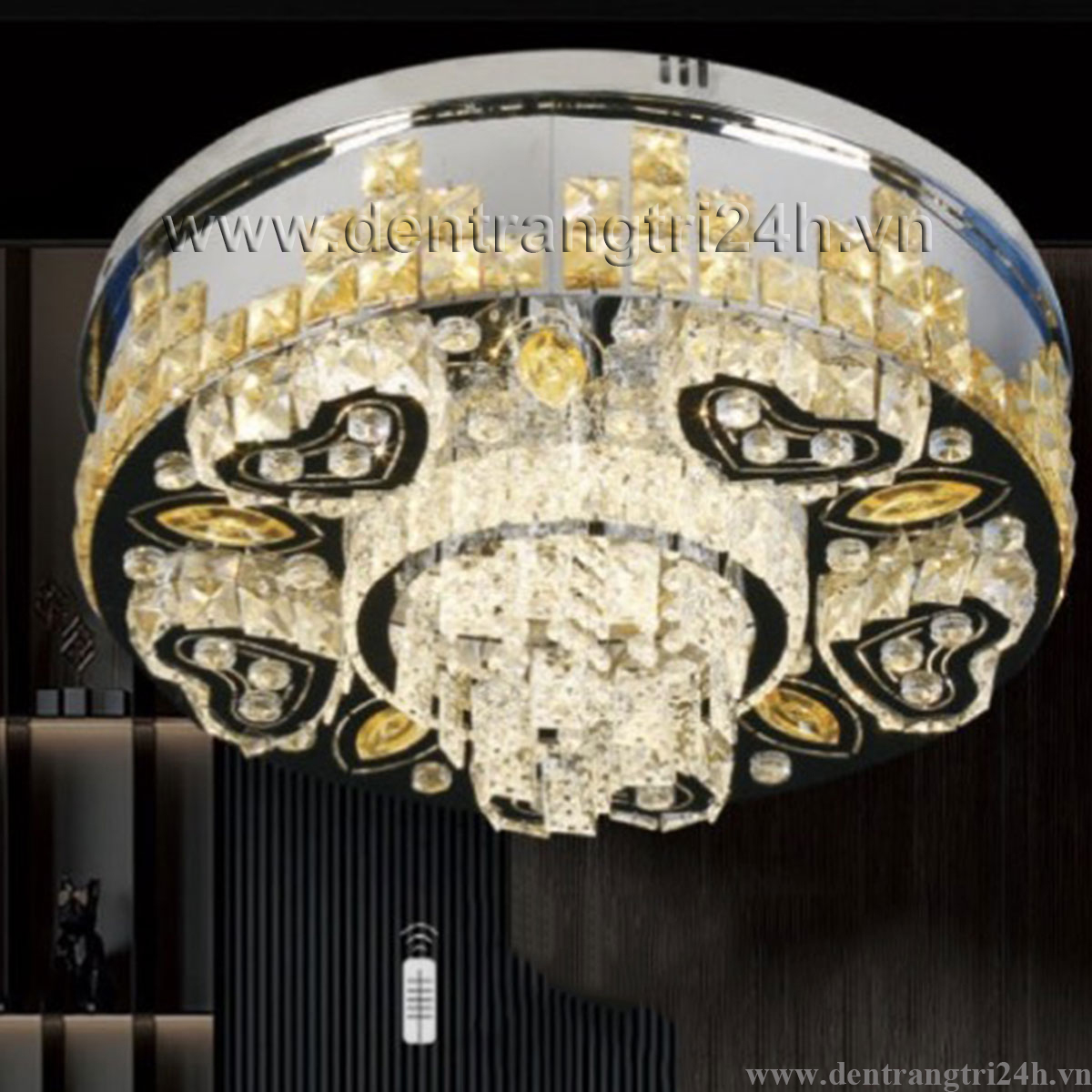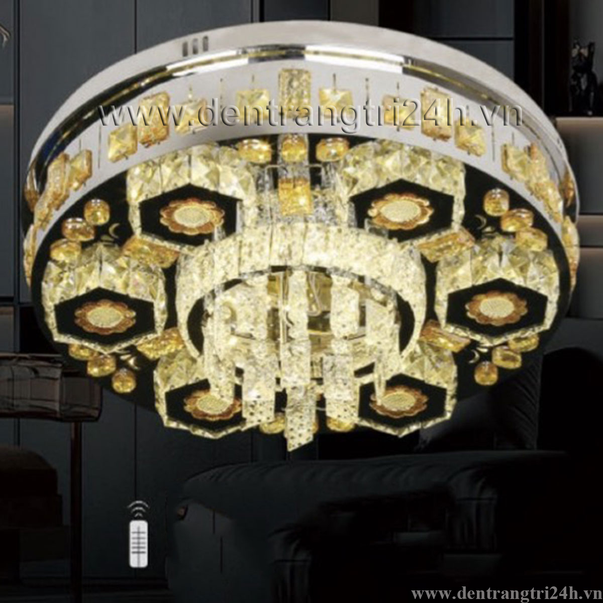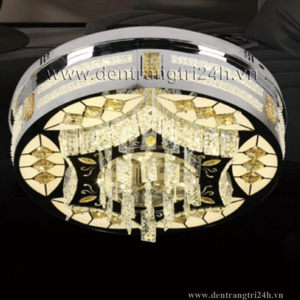 Đèn mâm pha lê tròn 3 chế độ sáng ML 199 Ø600xH200