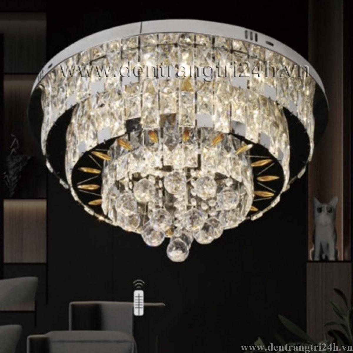 Đèn mâm pha lê tròn 3 chế độ sáng ML 517/600 Ø600xH200