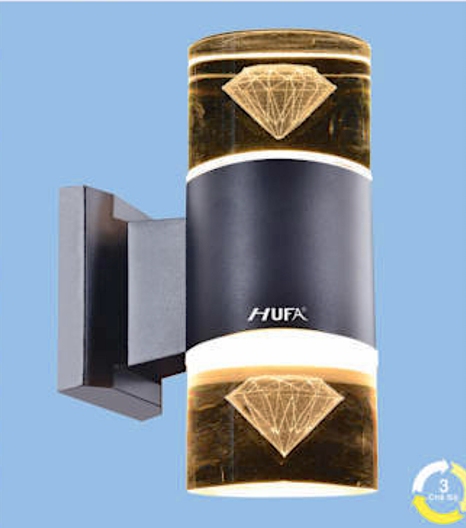 Đèn led gắn tường hành lang, ngoài trời ống tròn kim cương 12W AK 6029/2 Ø90xW150xH235