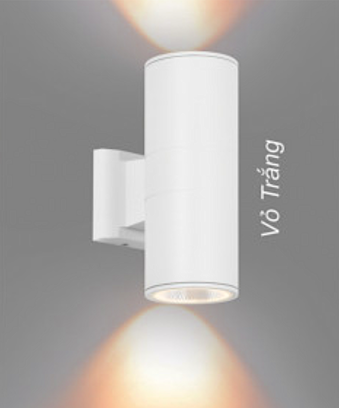 Đèn gắn tường ống tròn hắt sáng 2 đầu màu trắng ngoài trời VL-2242/2