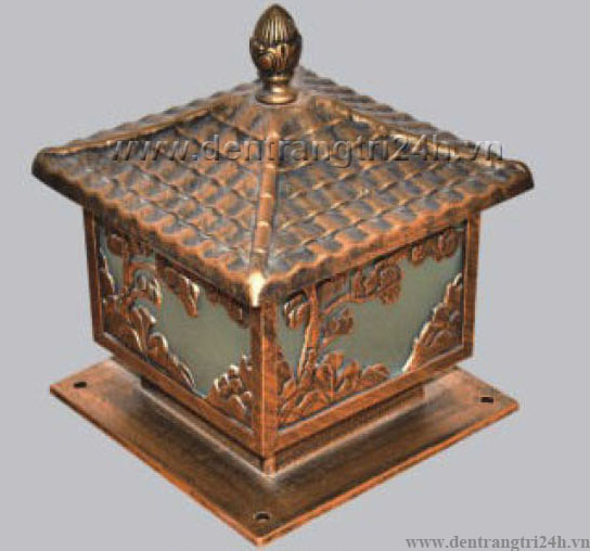 Đèn Trụ Cổng vuông màu đồng cổ điển mái ngói B3041 250x320