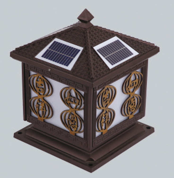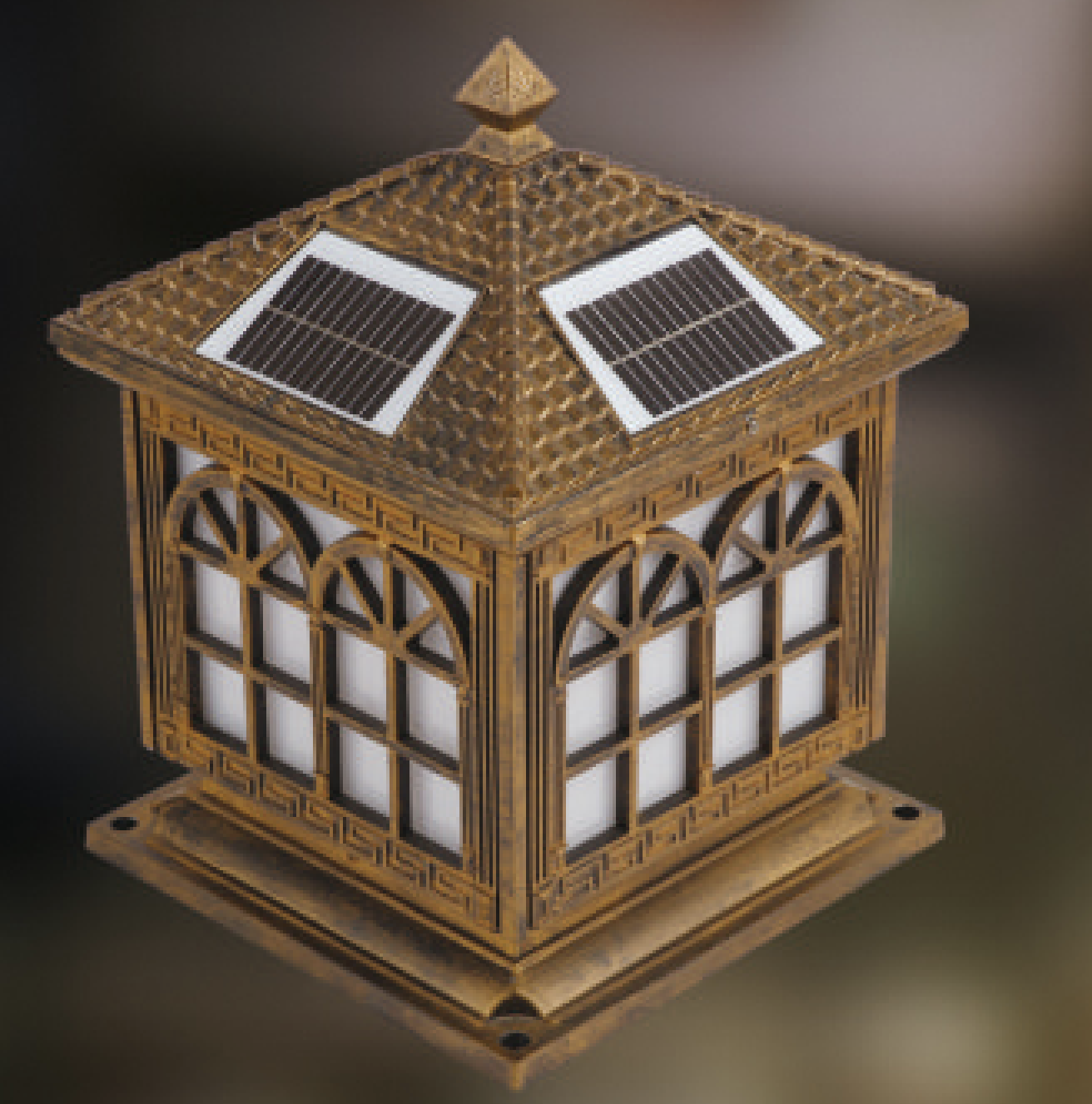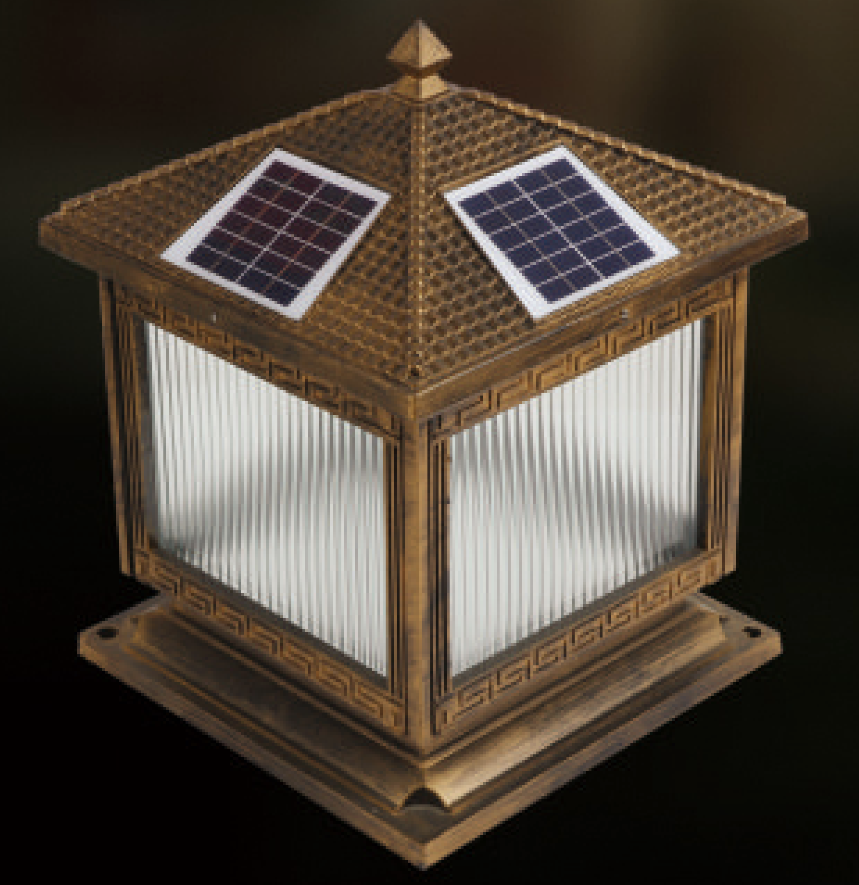 Đèn Trụ Cổng vuông năng lượng mặt trời đồng mái ngó ZX19-014/300 300x300