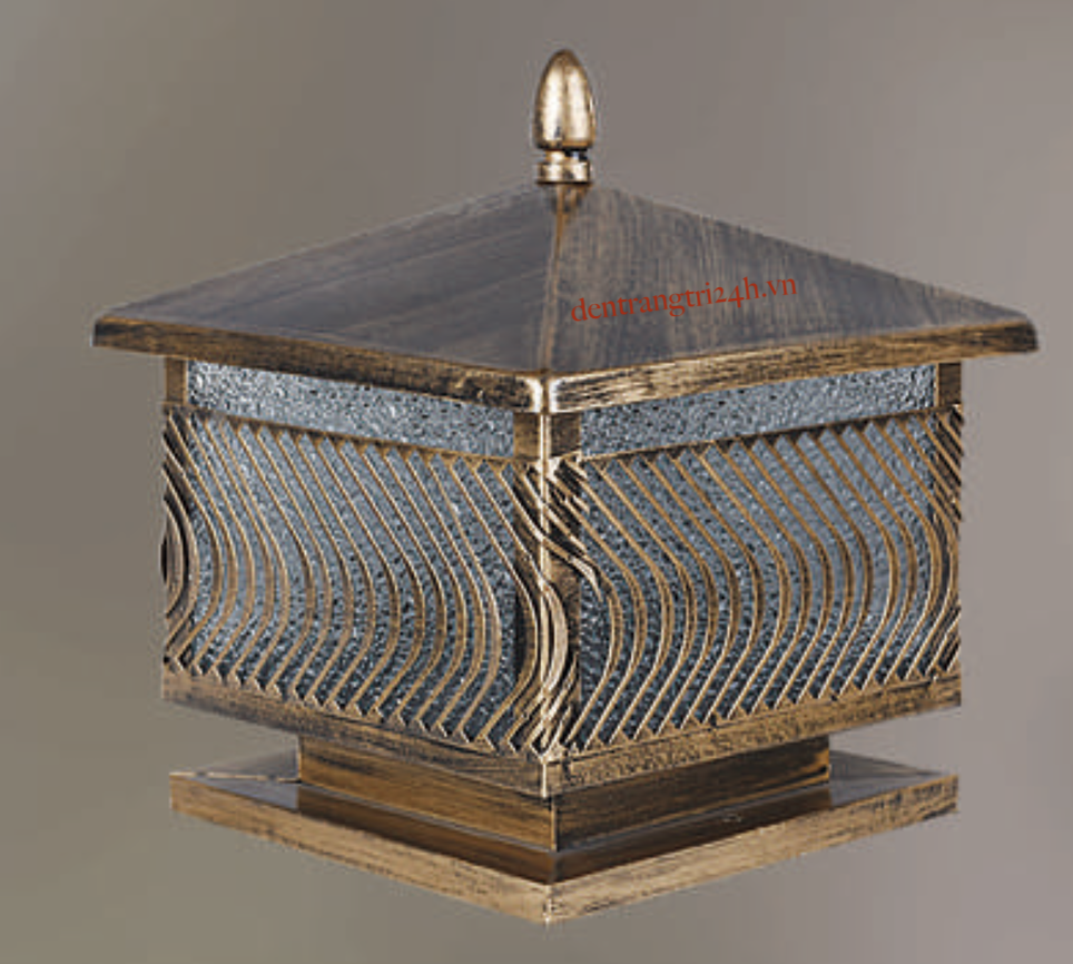 Đèn gắn đầu trụ cổng, đầu trụ, cột hình vuông màu đồng 4 mái cạnh 25cm R6710