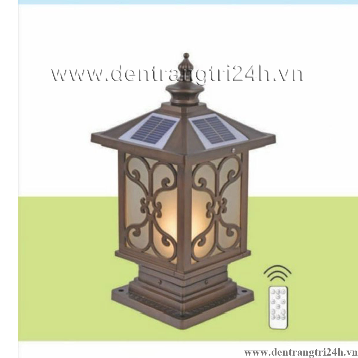 Đèn Trụ Cổng năng lượng mặt trời vuông màu đồng R6713 400x400