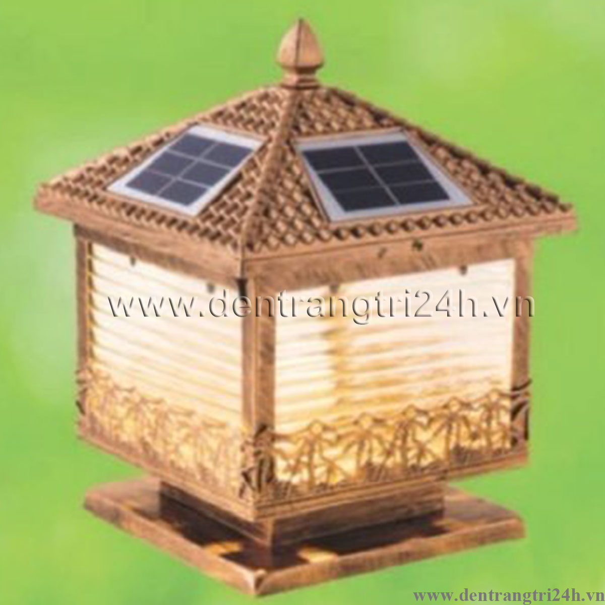 Đèn Trụ Cổng vuông màu đồng đỏ hình cây dừa có mái 6847 200x350
