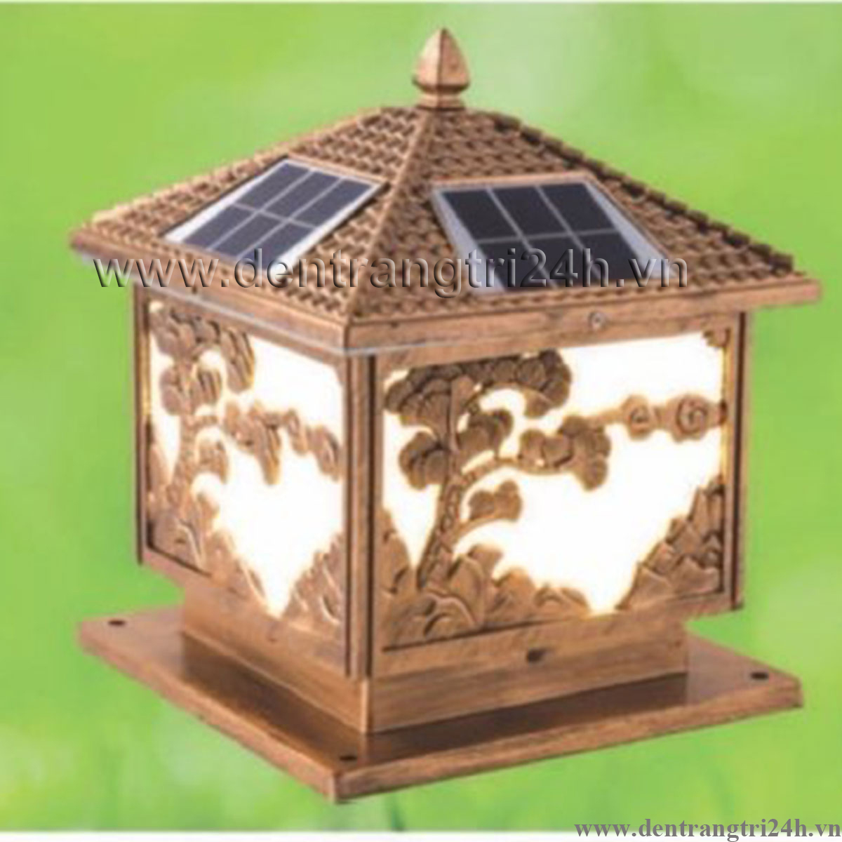 Đèn Trụ Cổng vuông có chữ thọ màu đồng R6711 250x250