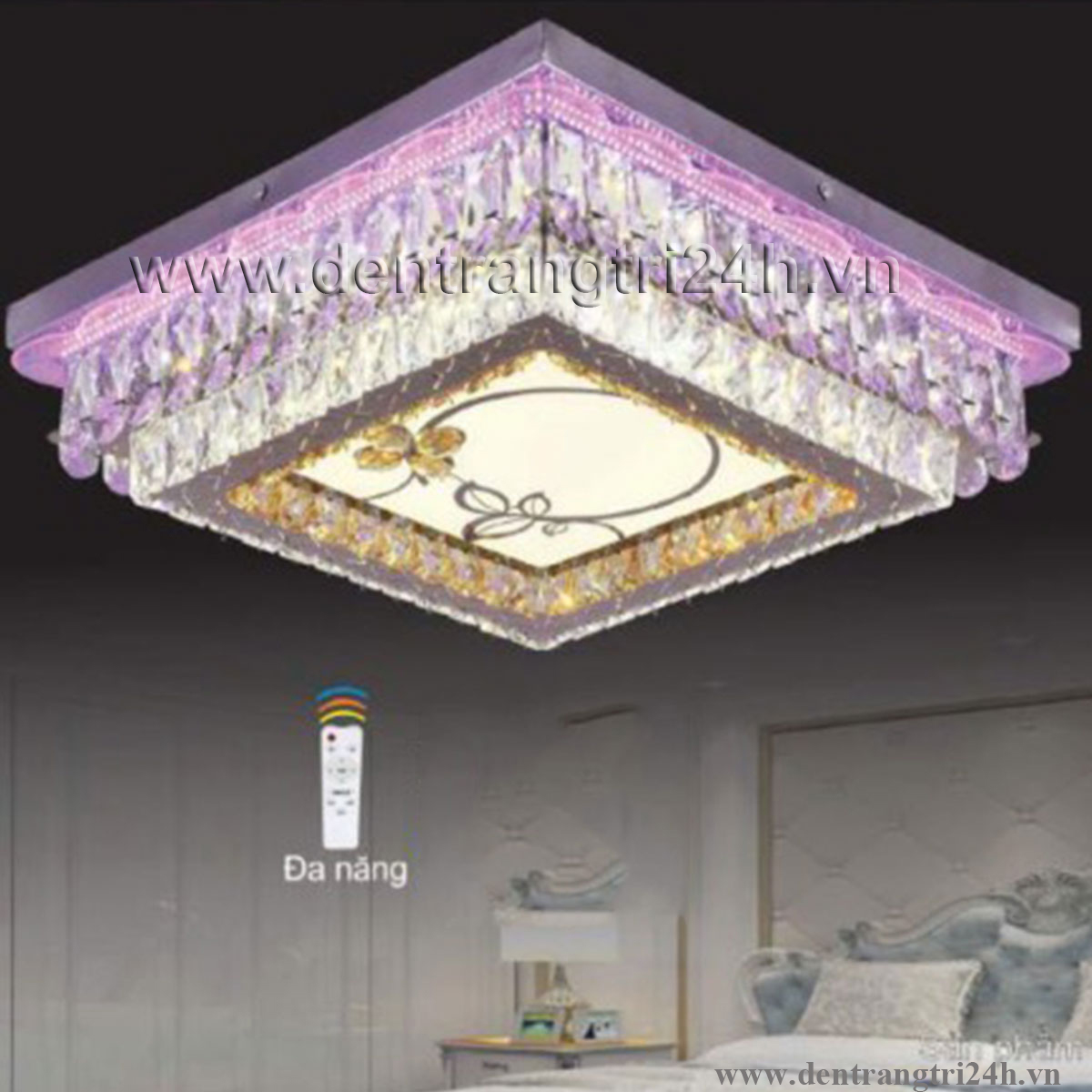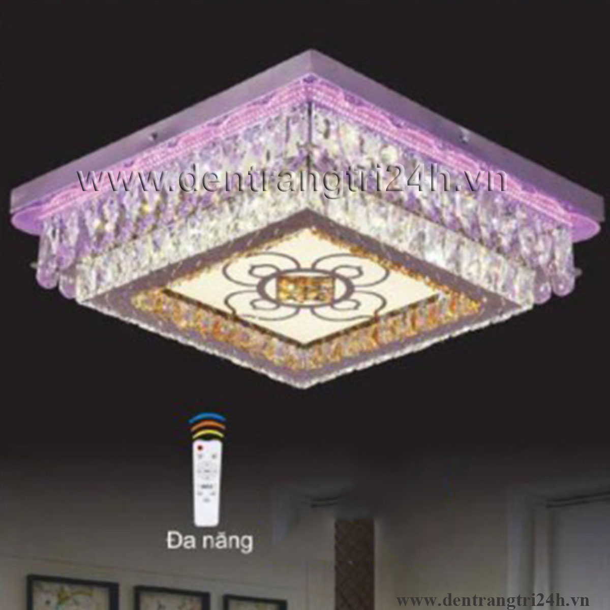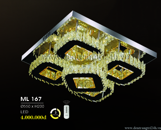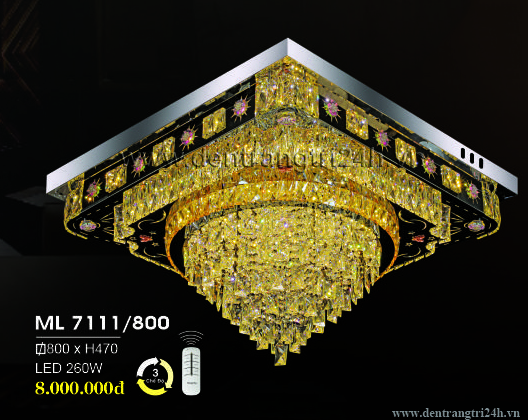Đèn mâm pha lê vuông 3 chế độ sáng ML 7111/800 800xH470