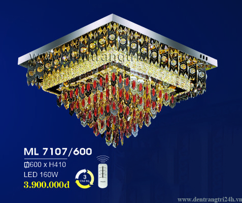 Đèn mâm pha lê vuông 3 chế độ sáng ML 7107/600 600xH410