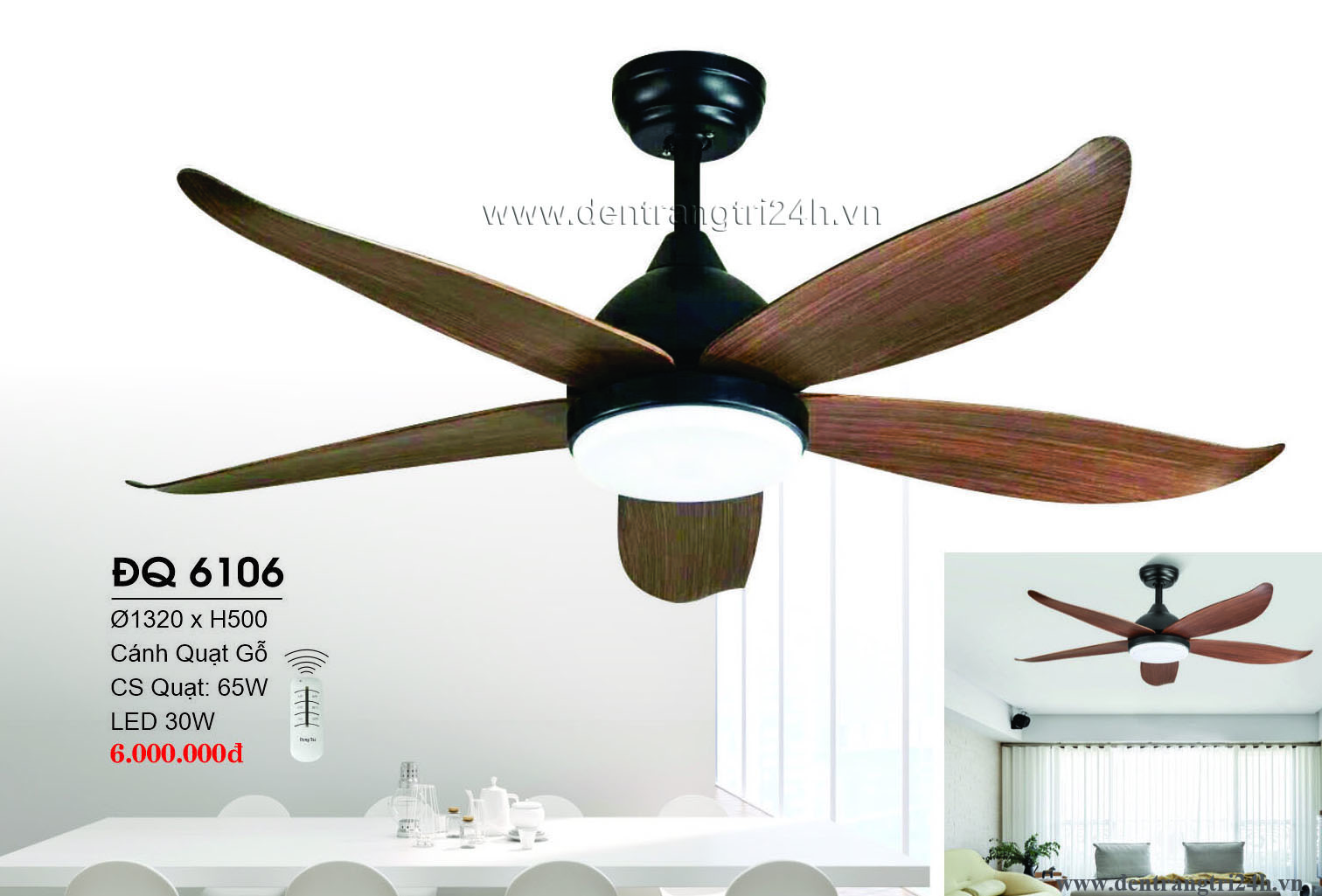 Quạt trần cho trần thấp 5 cánh gỗ có đèn led 36w ĐQ-6101 Ø1300xH310