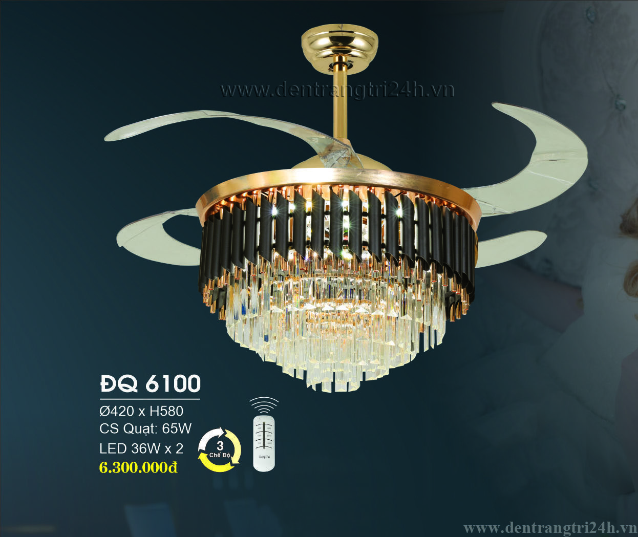 Đèn Quạt Cánh Xếp pha lê VE1 QT-1789