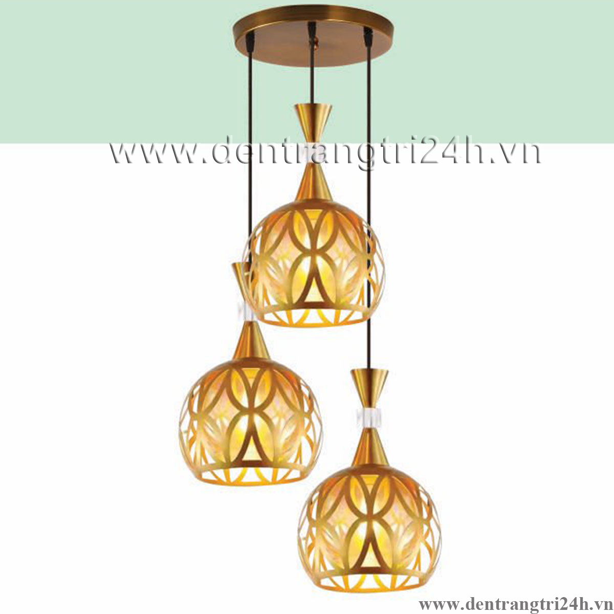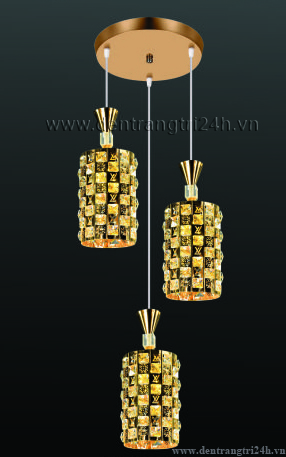 Đèn Thả Bàn Ăn 3 chụp đèn pha lê vàng TL 6323/3