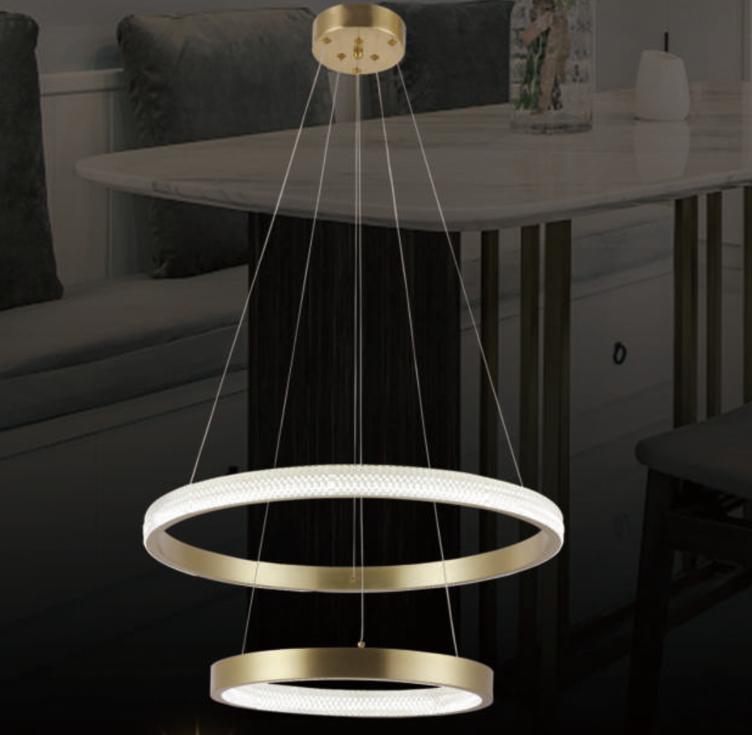 Đèn Thả 2 vòng tròn led 3 màu thân vàng DY3088 Ø600