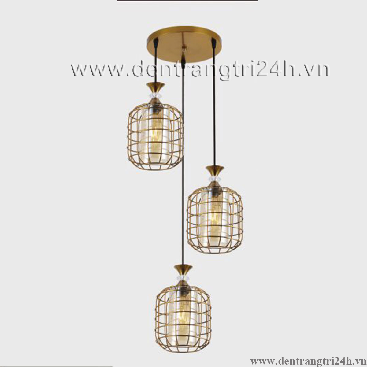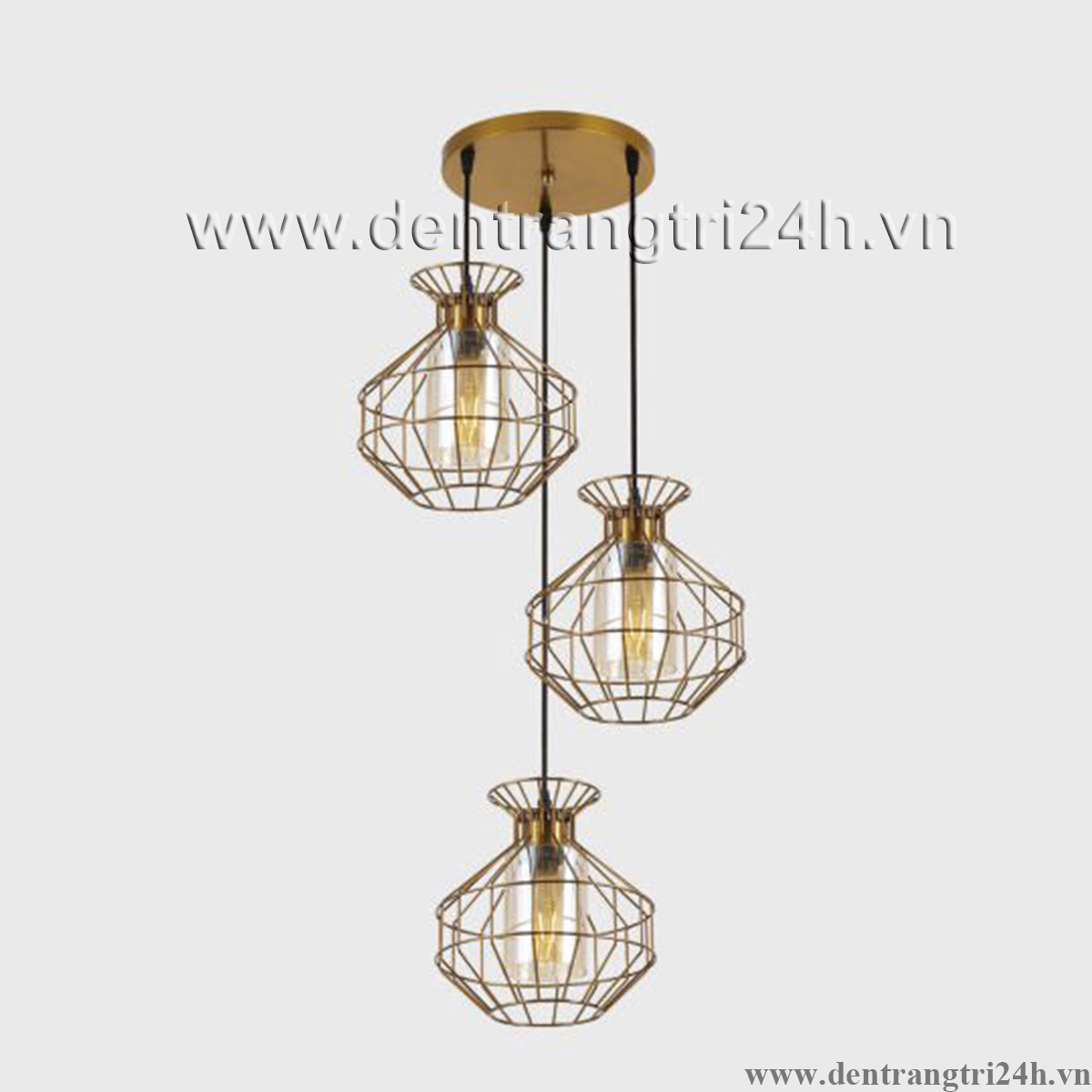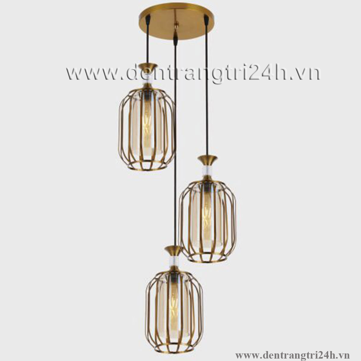 Đèn Thả 3 lồng sắt màu vàng KP9 DY4046/3 GAB Ø400xH1000
